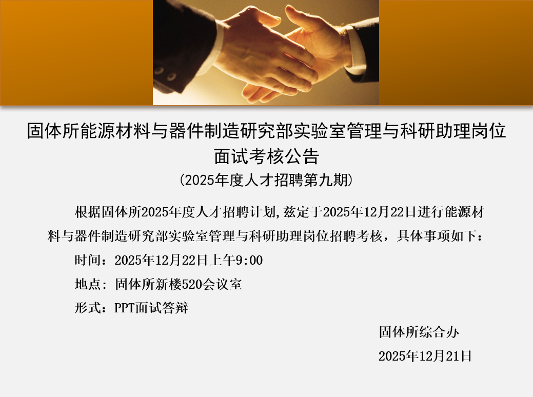 【面试通知】2025年第九期:固体所实验室管理与科研助理岗位面试考核公告