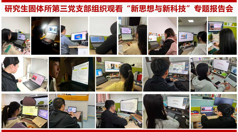 为深入学习贯彻习近平新时代中国特色社会主义思想,进一步领会新时代科技创新发展的战略意义,2025年11月3日下午,研究生固体所第三党支部组织全体党员线上观看“新思想与新科技——感悟思想与精神伟力,领略科技创新前沿情势”专题报告会。