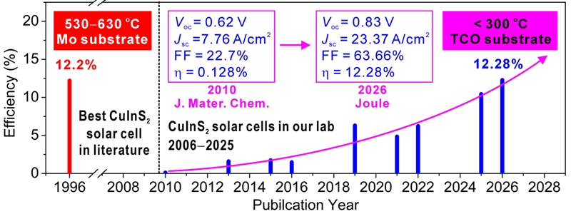 图1. 研究团队CuInS2太阳电池研究历程示意图